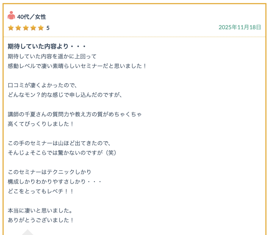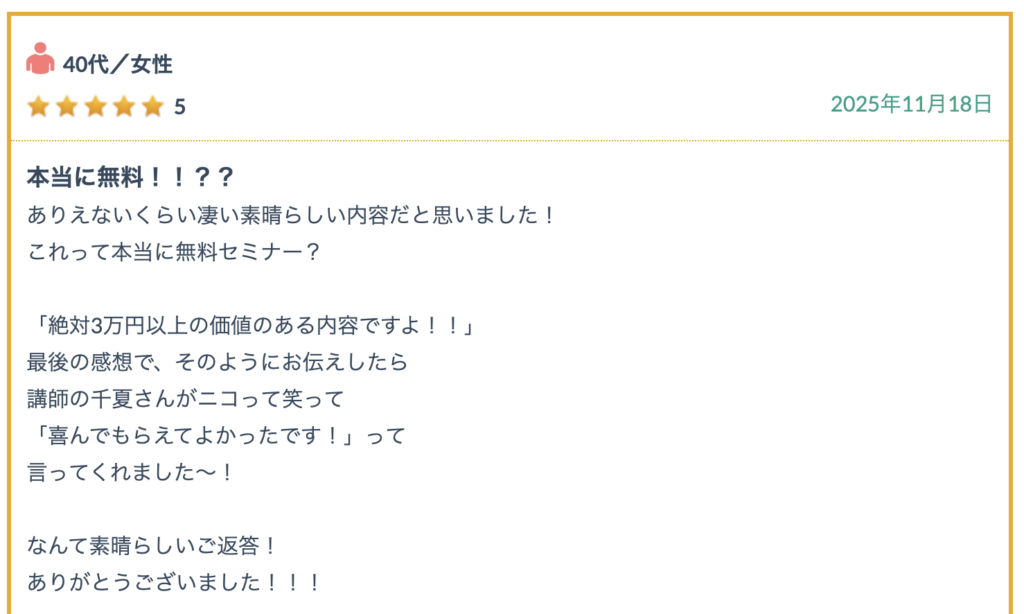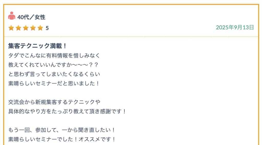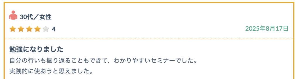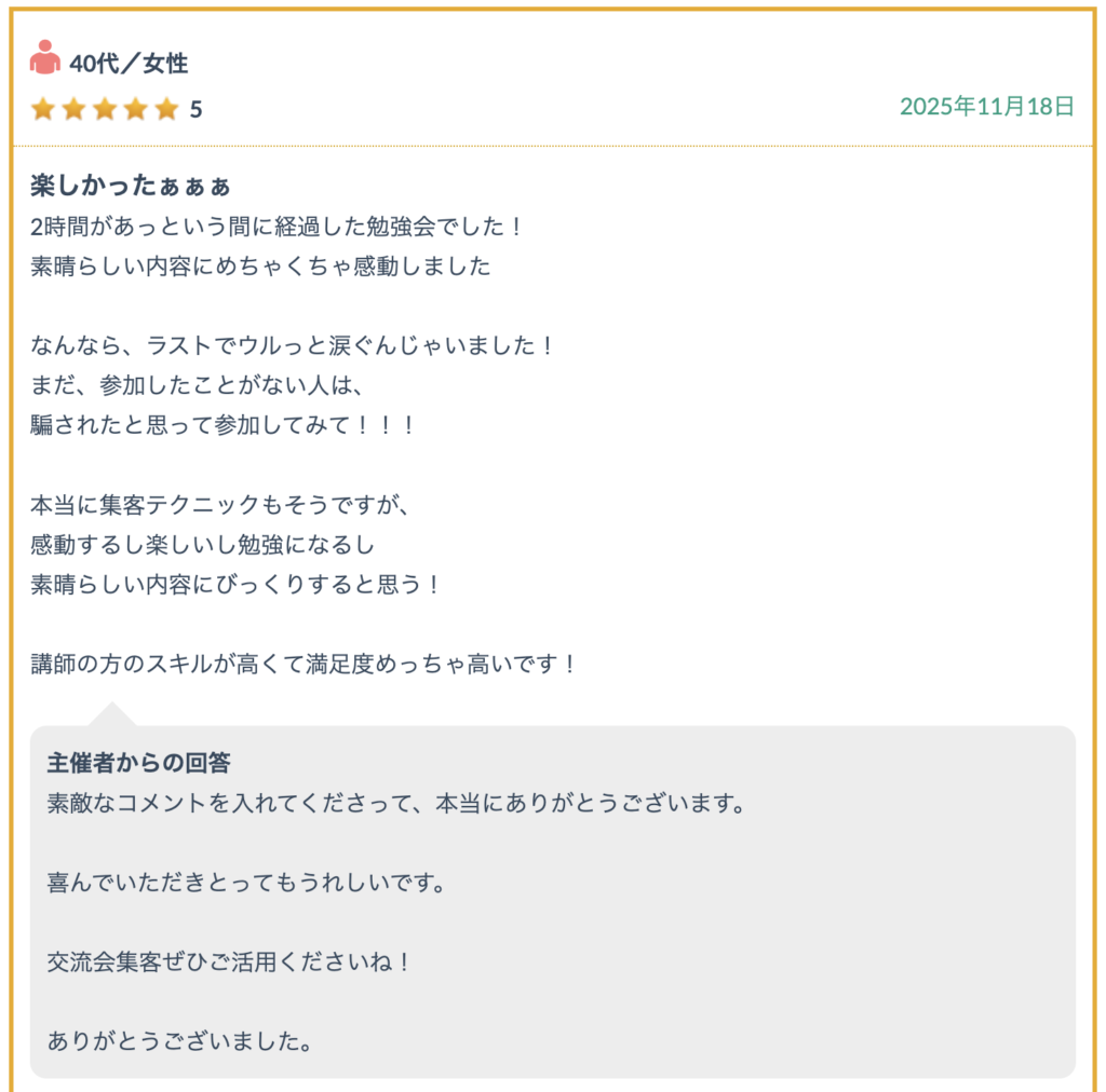 参加者様からの口コミ